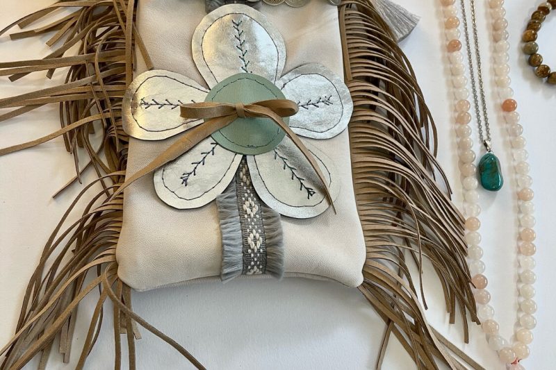 Daarna wordt jouw ontworpen totemdier in ons atelier op jouw favoriete kleur omslagdoek geborduurd en krijg je hem thuisgestuurd zodat je jouw totemdier altijd bij je kan dragen.
